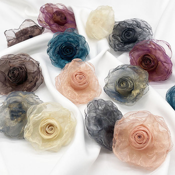 Handgemaakte Geborduurde Organza Rose Half Afgewerkte Zeemeermin Gebrande Rand Stof Bloemenaccessoires Voor Diy-Projecten